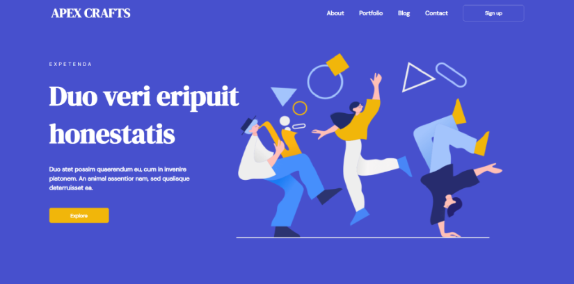 Apex Crafts is an online portfolio builder website designed to establish users' online presence effectively. Utilizing vibrant colors and smooth transitions, the desktop version offers a user-friendly and interactive experience. Its purpose is to showcase the services and projects of the Apex Crafts agency, aiding in client attraction and providing easily accessible online presence.